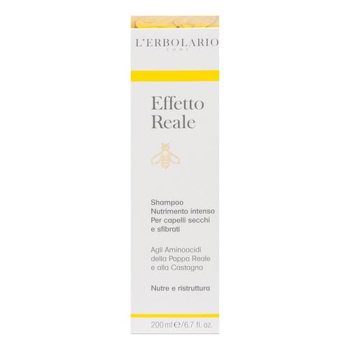 Effetto RealeShampoo nutrimento intenso Modalità d'utilizzo Distribuire una noce di prodotto sui capelli bagnati e massaggiare. Procedere con il risciacquo e ripetere l’operazione per un risultato ancora più evidente. Componenti Aminoacidi della Pappa reale*, Complesso Ristrutturante da Miele di Castagno, Pappa reale, Fiori d’Ibisco, Fiori d’Arancio amaro e dolce*, Base tensioattiva da Pappa reale, Olivo e Cocco*, Estratto di Noce verde, Estratto biologico di Castagna, Lipoproteina idratante da Riso, Polisaccaride da Semi di Guar. *Ingrediente esclusivo sviluppato dalla Ricerca de L’Erbolario. Formato 200 ml Cod.031644