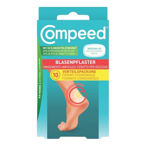 CompeedCEROTTO PER VESCICHE EXTREME FORMATO CONVENIENZA Descrizione Cerotti per vesciche con struttura a nido d'ape che offre il 20% in più di imbottitura. La tecnologia basata su gel idrocolloidale di Compeed, dona sollievo immediato da dolore e pressione, per una rapida guarigione. Rimane applicato per diversi giorni. Il design impermeabile e traspirante trattiene il naturale livello di umidità ed esercita un'azione protettiva contro i germi, favorendo una guarigione naturale più rapida. Avvertenze Pulire e asciugare la pelle prima dell'applicazione. Non toccare il lato adesivo del cerotto. Studiato per adulti. In caso di ...